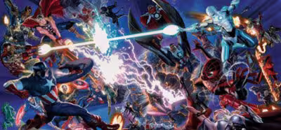 Junto con el anuncio de las nuevas Secret Wars, se ha hecho pública una imagen del grandísimo ilustrador Alex Ross sobre el nuevo evento. Es una imagen muy esclarecedora, pues son muy importantes las omisiones en la misma: no aparece miembro alguno de Los 4 Fantásticos ni mutantes. El Spiderman que aparece no es Peter Parker, sino Miles Morales, personaje que no nos extrañaría nada que cualquier día de estos acabase integrado en el universo Marvel normal, abandonando el Ultimate. En resumidas cuentas, sólo salen los personajes cuyos derechos para cine y televisión están en manos de Marvel, o que les interesa dar relevancia. Suponemos que los derechos de Miles Morales están en manos de Marvel, al igual que sí lo están los de Spiderwoman.