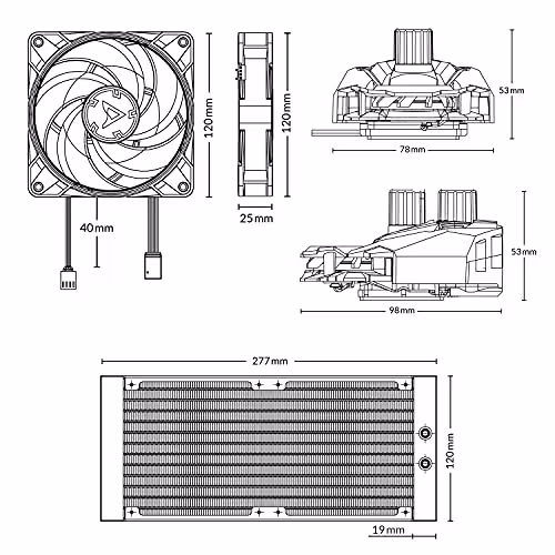 | Tamaño radiador | 120 mm × 277 mm × 38 mm |