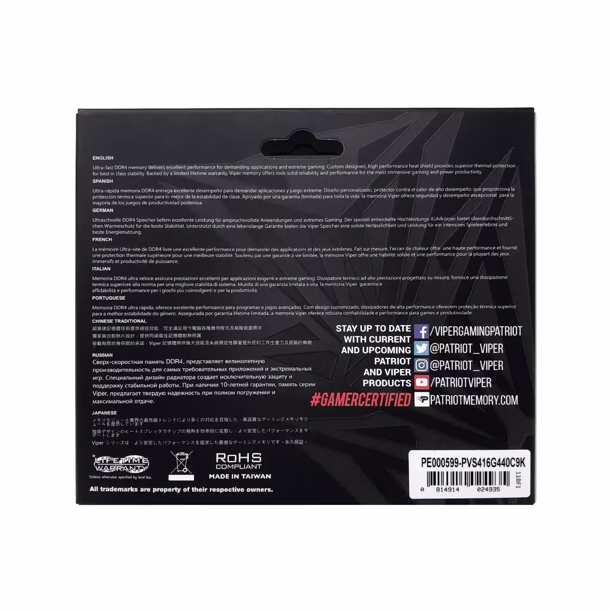 Características del Viper Steel 16 GB (2x 8 GB), DDR4-3733, CL 17 de Patriot