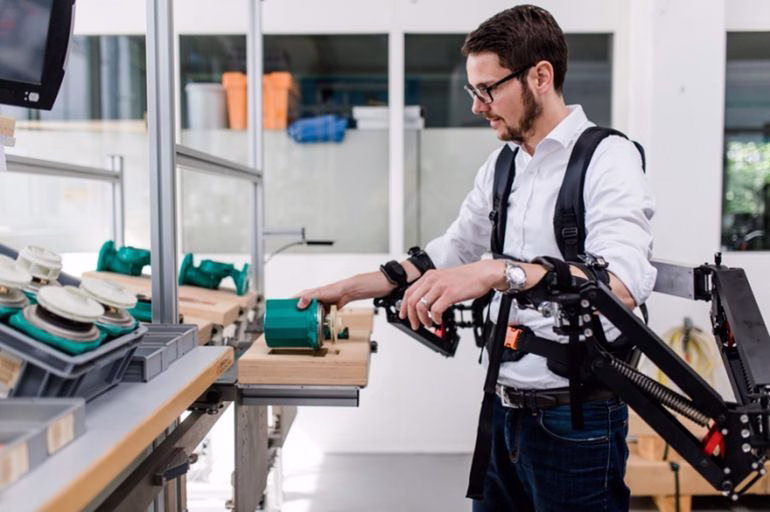 El exoesqueleto está compuesto de una serie de módulos para los brazos, cuerpo y piernas, distribuyendo el peso y facilitando activamente que se pueda sostener mayor peso sin problemas para los brazos y que parezca que el peso es de la décima parte que el real. El equipo ha sido diseñado para reforzar aquellas zonas más propensas a sufrir lesiones en tareas repetitivas en fábricas.