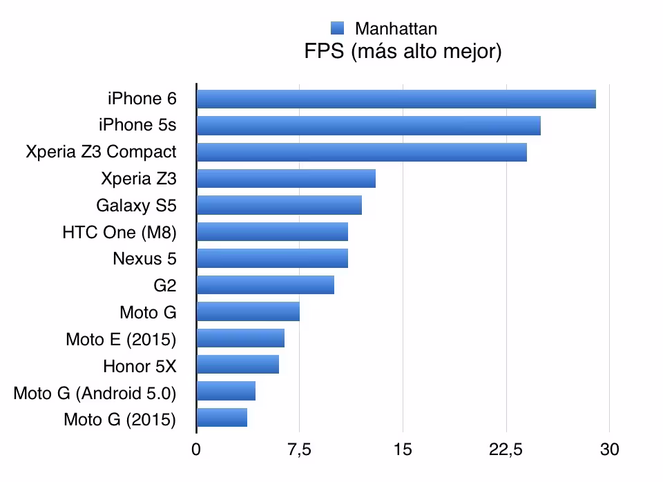 Por contra, el rendimiento multinúcleo del Snapdragon 616 es superior al del Apple A8 del iPhone 6, algo de lo que por lo general se benefician los juegos (aunque en el caso concreto del Honor 5X, como comentaré en el siguiente apartado, le sirve de poco en realidad). Este teléfono tiene suficiente potencia para funcionar fluido en transiciones y en cambios entre aplicaciones, que es otro aspecto del que sale beneficiado al tener cuatro núcleos más orientados para este tipo de tareas secundarias (los de bajo consumo a 1,2 GHz).