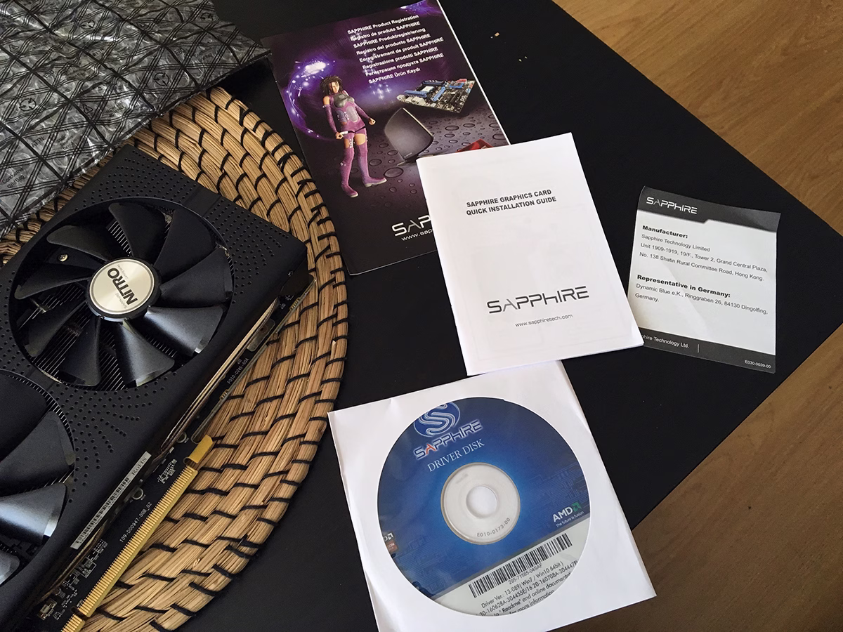 Las cajas en las que Sapphire vende sus productos tienden al minimalismo para reducir al máximo los costes de producción. Es un poco más grande que la propia tarjeta, debidamente embalada y protegida, y viene con un disco de controladores, la garantía e información adicional.