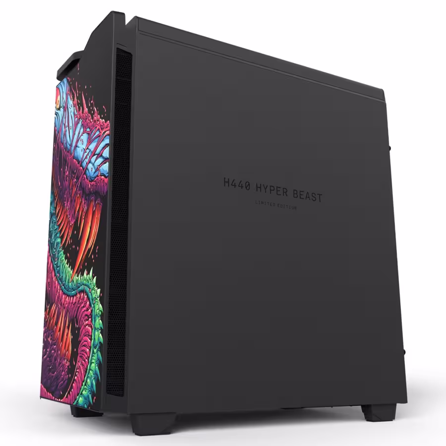NZXT ha tomado una de sus mejores cajas, la H440, y la ha personalizado con el diseño de la M4A1-S Hyper Beast. De ahí nace la H440 Hyper Beast, que es una edición limitada a 1337 unidades numeradas y de la que nunca más se volverán a hacer más. La caja en sí es excelente en cuanto a refrigeración y características, con huecos para refrigeración líquida en su parte superior y frontal, y de serie incluye tres ventiladores frontales de 120 mm y uno trasero de 140 mm.