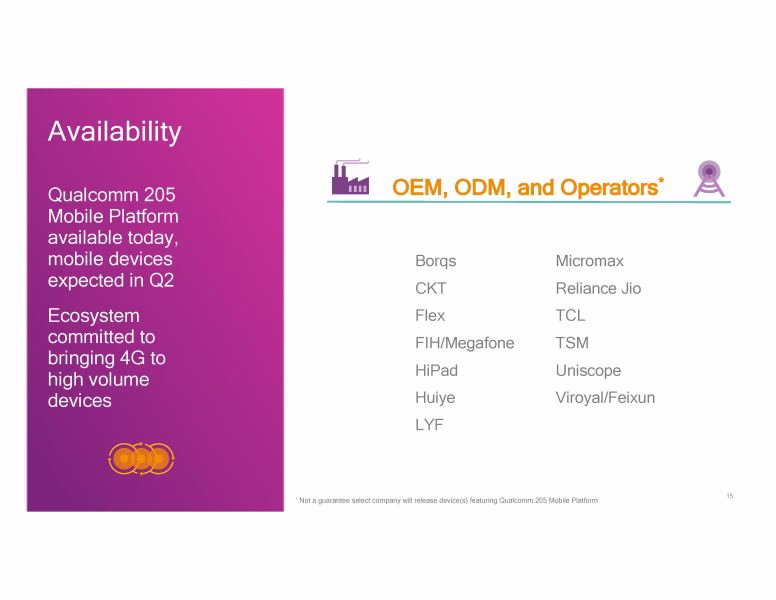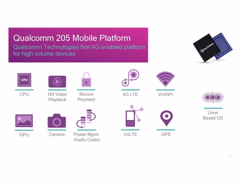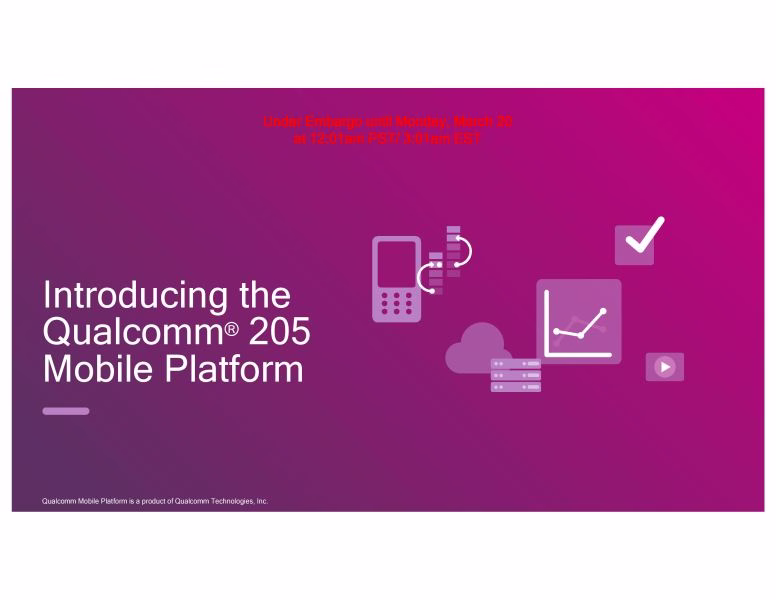 Qualcomm está cambiando de estrategia comercial con sus procesadores para que los procesadores Snapdragon se relacionen con chips de alto rendimiento. Eso implica un cambio de nomenclatura, y ya no son los procesadores Snapdragon sino la plataforma móvil Snapdragon. También sacó a la serie 200 de la nomenclatura Snapdragon, pasando a engrosar la Plataforma Móvil Qualcomm. El primero de los chips que tiene esta nomenclatura es el nuevo 205.