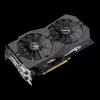 Por último, hay dos representantes ROG Strix de las RX 570. Disponen de un sistema de ventilación de doble ventilador en vez de tres, pero tienen sistema de parada. Curiosamente tienen dos conector DVI-D en vez de uno —o ninguno—, un HDMI y un DisplayPort. Están refrozadas con una placa trasera, y tienen iluminación RGB. Tienen un tamaño de 240 x 129 x 39 mm.