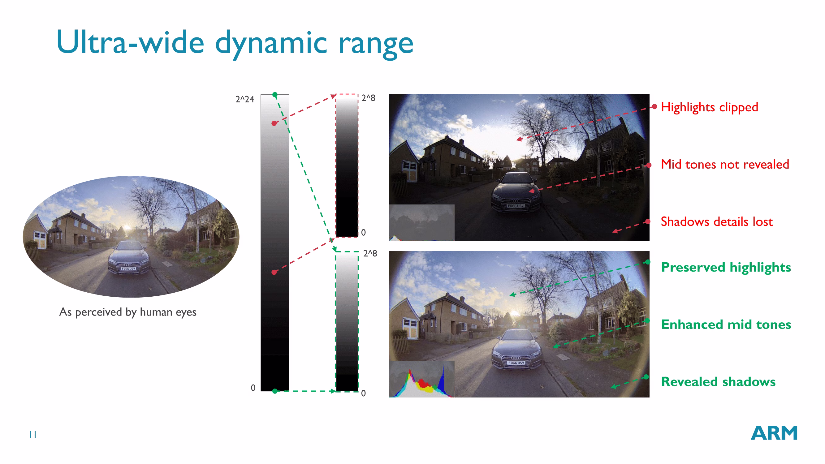 El objetivo de este chip es poder manejar un alto número de cámaras, de diez a doce, con rango dinámico ultraamplio (ultra-WDR) para imágenes con hasta 24 paradas, que es más de lo que los teléfonos actuales tienen, y más que las 15 paradas o cambios en la exposición de que disponen las cámaras réflex digitales. Esto significa que es un chip que puede usar las cámaras para detectar formas en zonas poco iluminadas o muy iluminadas de una imagen, como por ejemplo cuando el sol está en la zona a la que apunta la cámara.