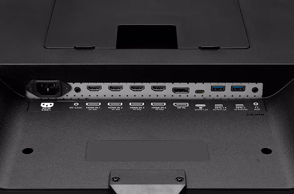 Para ello dispone de un DisplayPort 1.2a, dos HDMI 2.0, dos HDMI 1.4 y un USB-C compatible con DisplayPort, además de un concentrador de dos USB 3.0. La pantalla se puede dividir en otros tamaños como se ve en la imagen adjunta, por lo que proporciona mucha versatilidad en este aspecto. Además, también se puede utilizar el modo de imagen superpuesta, situando la segunda entrada de vídeo en una de las cuatro esquinas.
