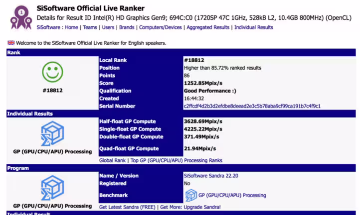 Pero eso es algo normal en SiSoft, y hay resultados similares combinando la gráfica integrada de un procesador con una gráfica dedicada, y el ejemplo lo tenéis a continuación. Se pueden elegir en SiSoft ejecutar la prueba en varias GPU a la vez. Así que no, no hay confirmación de que exista, y esto siguen siendo rumores.