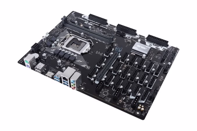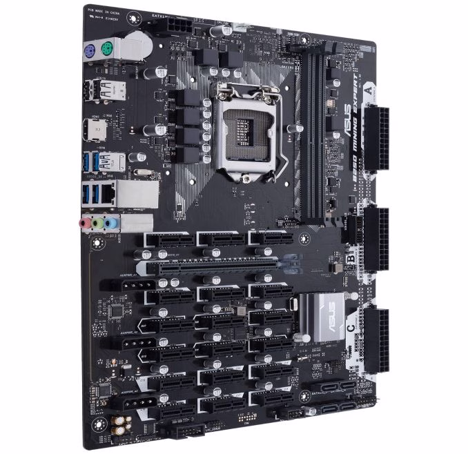 ASUS sigue la estela de otras compañías anunciando una placa base para criptominería, la B250 Expert Mining para procesadores Intel. En este caso, dispone de 19 ranuras PCIe para conexiones con tarjetas gráficas, teniendo en total dieciocho ranuras PCIe 3.0 x 1 y una PCIe 3.0 x16, distribuidas en hileras de tres.