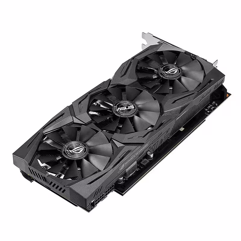 Este modelo incluye dos conectores PCIe de ocho pines, aunque tiene un consumo de 210 W, 60 W más que la GTX 1070, que entra dentro de lo razonable. ASUS no ha indicado las frecuencias de funcionamiento de la GPU, pero habrá una versión de esta ROG Strix con las frecuencias de referencia, y otra subida de fábrica, aunque ambos modelos estarán orientados al overclocking. Incluye dos conectores HDMI 2.0b, dos DisplayPort 1.4 y un DVI-D.
