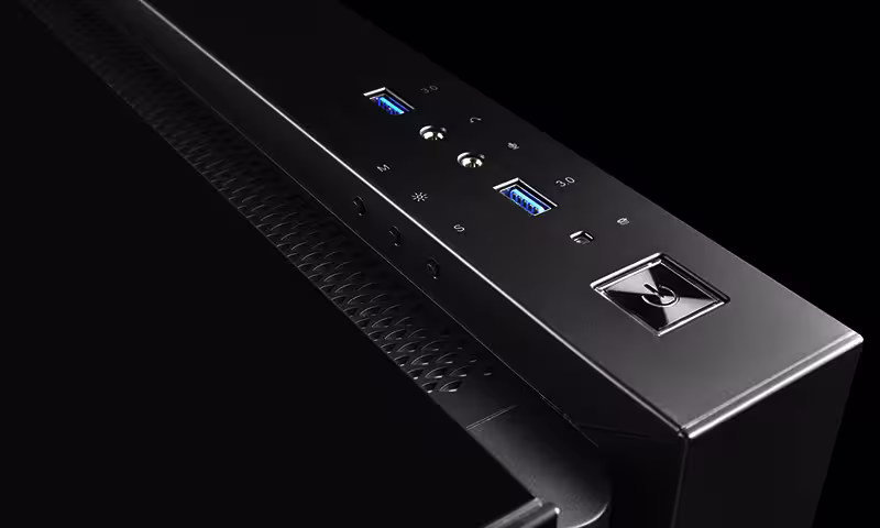 El panel de control frontal dispone de dos puertos USB 3.0, dos conectores de 3.5 mm, y el botón de arranque. Se pueden instalar disipadores de hasta 186 mm de altura. Por último, hay espacio suficiente para instalar placas base hasta tamaño E-ATX.