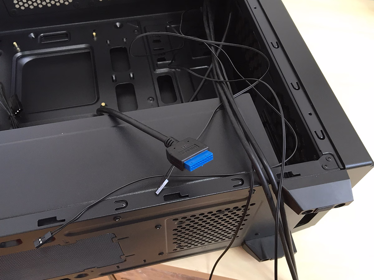 En mi caso, que solo instalo habitualmente uno o dos SSD internos y el resto del almacenamiento es externo, no es mayor problema, pero los que quieran instalar varios discos duros de 3.5 pulgadas y usen una fuente de alimentación no modular recomendaría mirar en otra dirección. Al fin y al cabo, es una caja económica, pequeña y versátil, pero no tan versátil. Para un par de SSD se puede aprovechar la ubicación dentro del hueco principal de la caja así como el de detrás de la placa base —aunque en este caso también habría que atornillar el SSD antes de poner la placa base—. Además, hay que tener en cuenta que los discos duros de 3.5 pulgadas se atornillan en lugar de usar bandejas, por lo que habría que fijarlos antes de instalar la fuente de alimentación, y quitar la tapa frontal para atornillarlos por ese lado.
