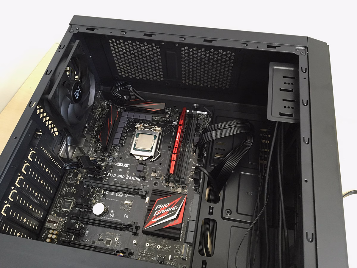 El tipo ideal de equipo para montar en esta caja es uno con una placa micro-ATX, aunque se puedan instalar también placas base ATX y mini-ITX. Para estas placas no hay ninguna pega en el montaje, aunque para las ATX recomendaría, si el refrigerador que se va a instalar cuenta con placa trasera de sujeción, montarlo primeramente en la placa base antes de instalar la placa base en la caja. La apertura de acceso de la plancha en la que va sujeta la placa base no es muy grande, y por tanto no se podría atornillar la placa trasera de ciertos disipadores si se instala primeramente la placa base y luego se intenta poner la refrigeración.