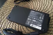 En la caja en la que se vende, se incluye un adaptador VESA de 100 mm × 100 mm, la tornillería relacionada, la llave Allen para abrir el equipo, un manual de usuario, la garantía, una pegatina del procesador i7 con la Radeon, y el cargador externo. Este cargador es de 230 W, dando algo de margen a los más o menos 150 W que consume el equipo en carga —como indico en el apartado de consumo más adelante—. No me termina de convencer que el cable salga en forma de L, por los tirones que se va a llevar innecesarios, si bien favorece su transporte.