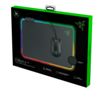 Razer ha decidido renovar sus alfombrillas con el modelo Firefly v2, que mejora en varios aspectos a la Firefly original aunque se mantiene en esencia similar —es una alfombrilla al fin y al cabo—. Su tamaño es de 255 mm × 355 mm × 3 mm, con una tira de ledes cosida a lo largo de su borde y dispone también de iluminación en el logo de Razer de la esquina superior derecha.