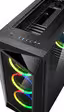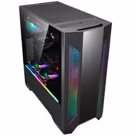 El panel de conexiones frontal tiene dos USB 3.0, un USB 3.1 tipo C y dos de audio de 3.5 mm, más botones de arranque, reinicio, y dos de control de la iluminación ARGB integrada. Hay espacio para disipadores de procesador de hatsa 176 mm, tarjetas gráficas de hasta 384 mm —se puede instalar en vertical—, y fuentes de hasta 210 mm.