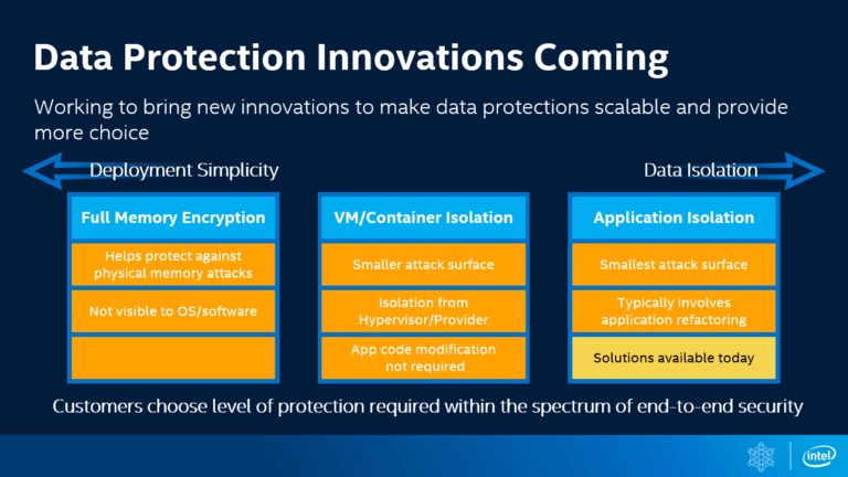 En parte la pérdida de rendimiento se debe a que se crea un entorno seguro en la memoria principal para el cifrado y descifrado de información, pero no se hace por hardware. Ese tiempo de procesamiento adicional es lo que ralentiza. Los próximos procesadores de Intel añadirán capacidad de usar encriptación total de memoria (TME) y encriptación total de memoria de clave múltiple (MKTME), que ya está implementado en Linux. Con este nuevo sistema también se solventarán otros problemas relacionados, como el tamaño de las páginas de memoria que se pueden usar, o que SGX hay que implementarlo aplicación por aplicación.