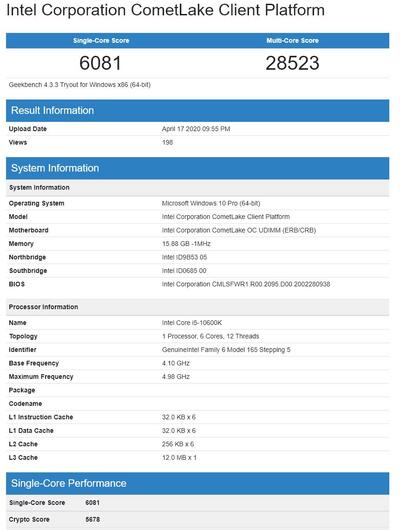 Dos nuevas supuestas pruebas en Geekbench 4 sitúan a los Core i5-10600K de seis núcleos con multihilo y Core i7-10700K de ocho núcleos con multihilo en la órbita de rendimiento de los Ryzen 5 3600X y Ryzen 7 3800X respectivamente. Los procesadores de Intel tendrían algo más de rendimiento mononúcleo y algo más multinúcleo, pero salvo que Intel consiga ponerlos en cantidad en el mercado para venderlos baratos, no van a aportar nada que pueda hacer que alguien que se quiera montar un nuevo equipo vaya a optar por estos Comet Lake S.