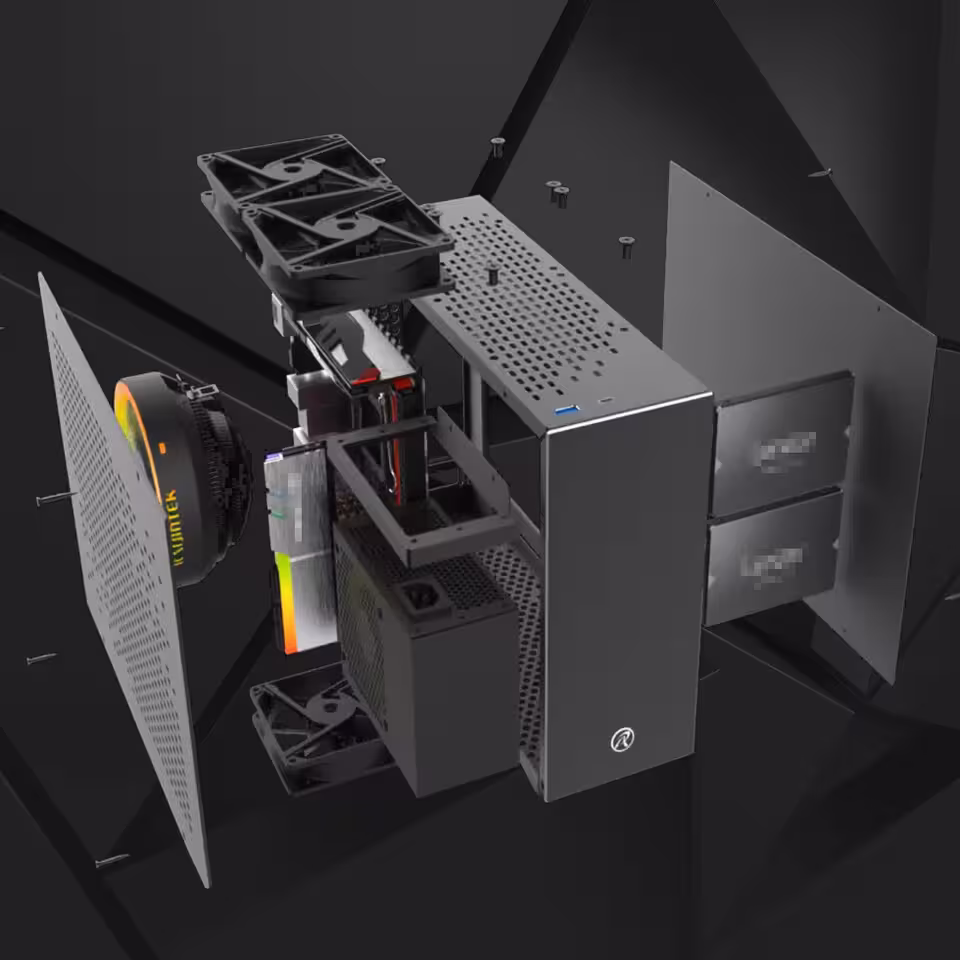 Es un equipo para placas base mini-ITX y solo dispone de una ranura PCIe, por lo que se pueden instalar tarjetas gráficas de una sola ranura de ancho, por lo que está más orientada a procesadores con unidad gráfica integrada medianamente potente —como las APU de AMD— o simplemente para equipos de ofimática.