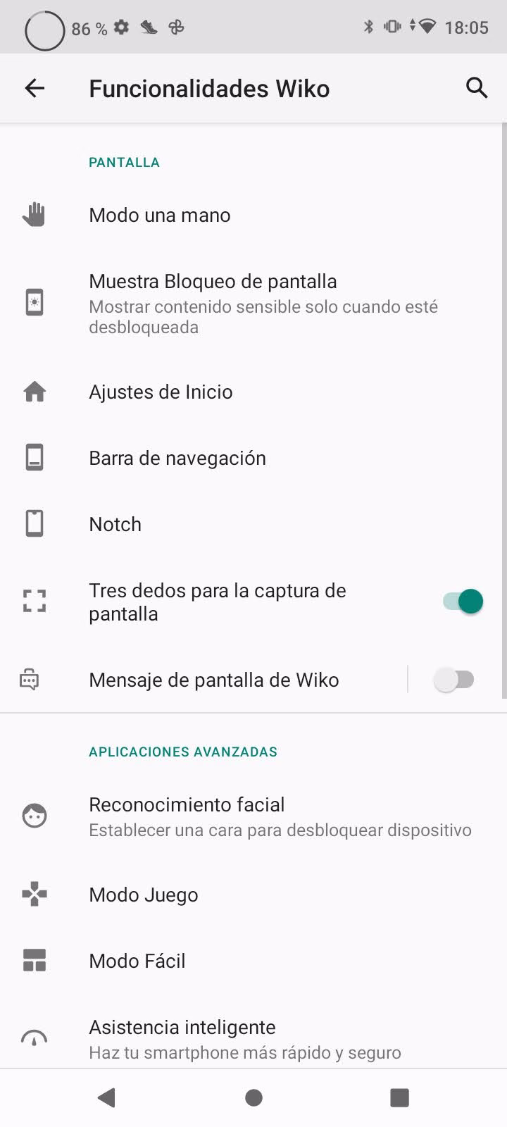 En las opciones del móvil se añaden opciones que pueden ser interesantes, como DuraSpeed, aunque en versiones de otros años era potencialmente más un problema que una solución para aumentar la autonomía y fluidez del dispositivo. Hay una sección específica para los servicios de Wiko, que si se activan se puede enviar información de uso o recibir ofertas personalizadas. Todo es totalmente opcional. También hay un apartado para acceder a gestos, un modo de juego para mejorar su velocidad —no es un móvil para ello— y otras funcionalidades como el modo a una mano, opciones para mostrar u ocultar mejor el balazo de la pantalla, y otros. En general la experiencia es casi como la de Android puro, y eso es de agradecer.