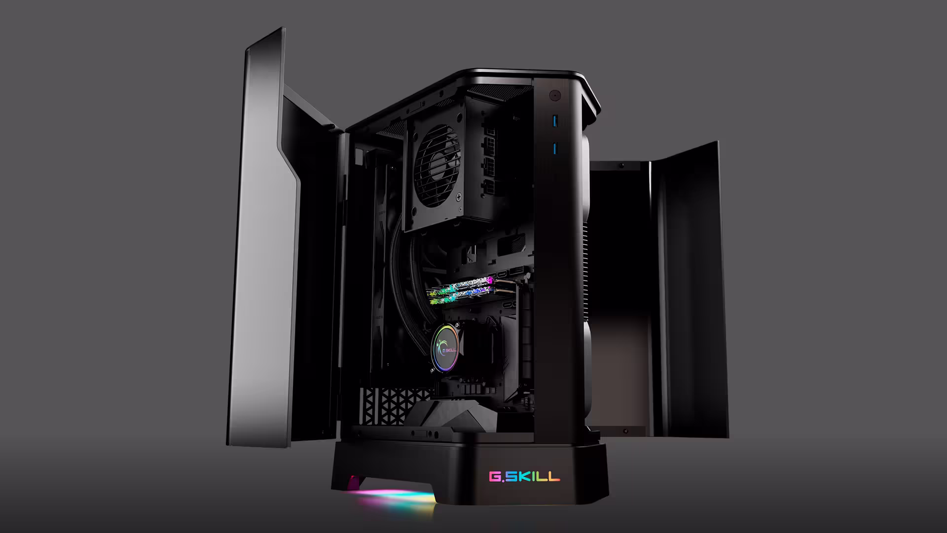 G.Skill ha entrado en el sector de las cajas de PC con la Z5i, un modelo para mini-PC que tiene un diseño interesante y un interior bastante compactado. El cuerpo principal de la caja está hecho de aluminio, con un par de ventanas laterales de cristal sobre bisagras que facilitarán el acceso a su interior. La compañía no ha dado por ahora todos los detalles de la caja, y falta el tamaño exacto y el peso.