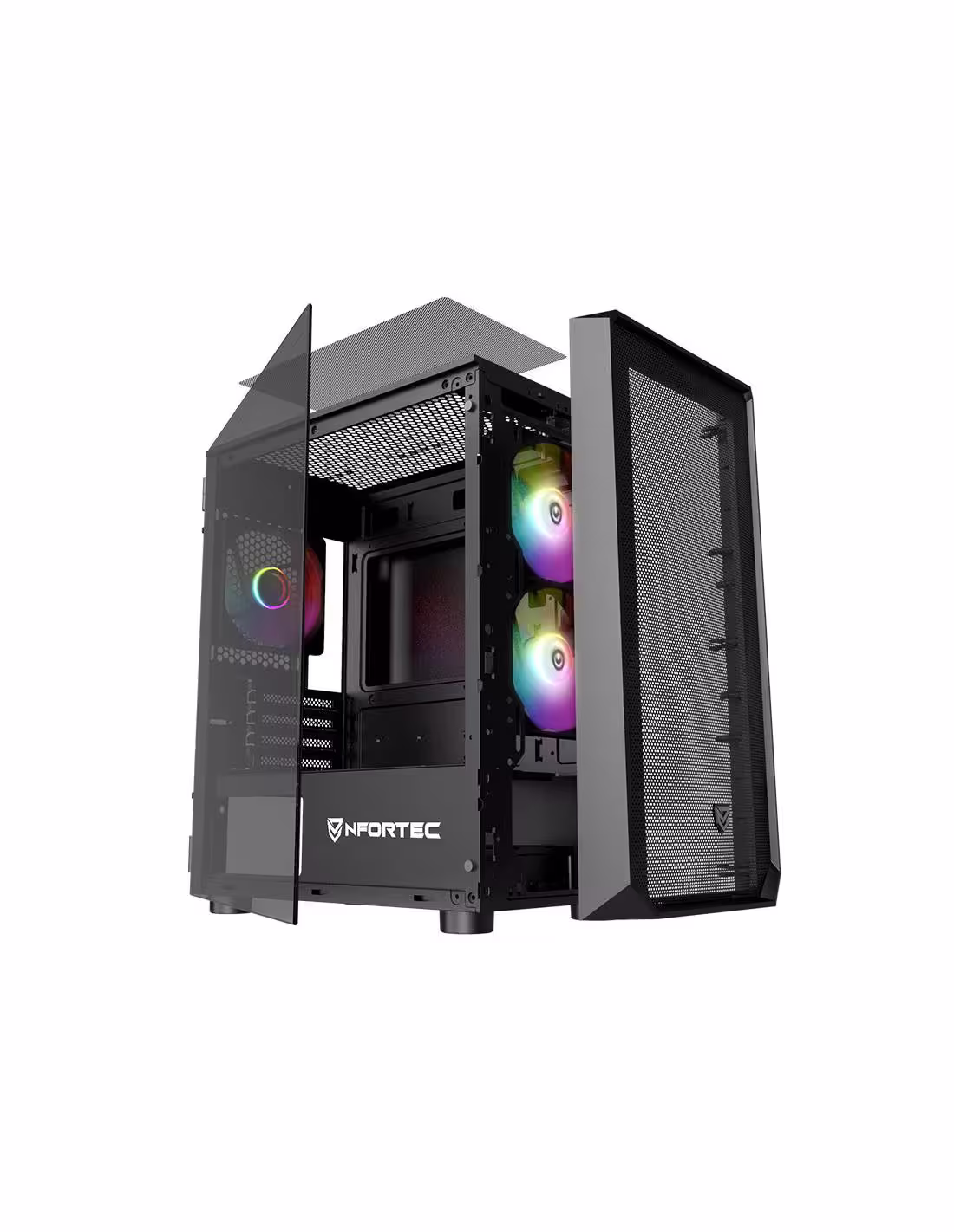 Nfortec ha presentado la semitorre Dys, un modelo de menor tamaño del habitual ya que está pensada para instalarle placas base micro-ATX o mini-ITX. El tamaño de la caja es de 412 mm × 205 mm × 340 mm (al. × an. × pr.) y pesa 4.9 kg. Tiene el habitual interior compartimentado, con ventana lateral de cristal y frontal mallado.