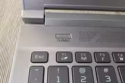 En la parte inferior del equipo puede ver la zona de los altavoces. El sonido es de DTS, de una calidad bastante buena de reproducción, pero que el sonido proceda de la parte inferior del equipo no beneficia a cómo se escucha. El botón de arranque está integrado en el teclado, en la esquina superior derecha, mientras que fuera del teclado en la parte superior izquierda hay un botón específico de turbo para hacer que los ventiladores funcionen al máximo siempre que se quiera.
