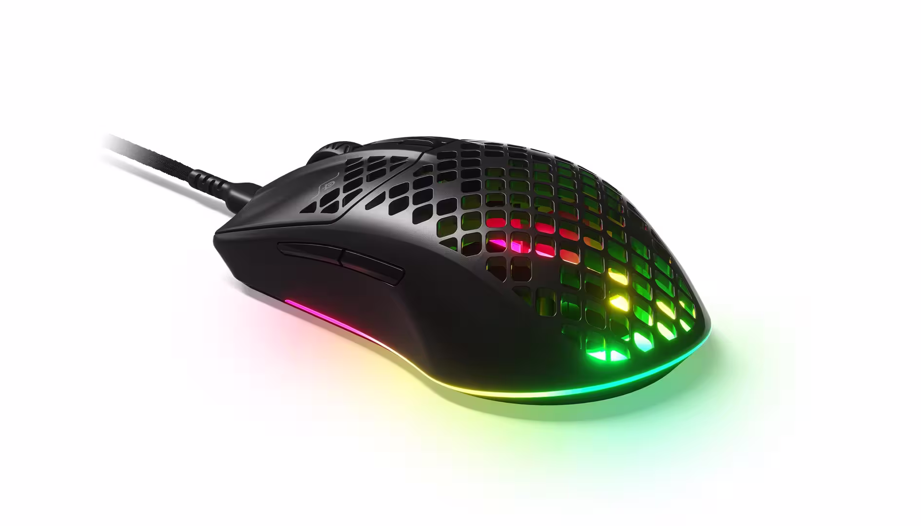 Estos ratones tiene un tamaño de 120.55 mm × 67.03 mm × 37.98 mm con la superficie agujereada, pero para que no den miedo los derrames accidentales se ha diseñado de tal forma que cuenta con un certificado a prueba de agua y polvo IP54. Esa rejilla de la superficie hace que el modelo cableado tenga un peso de 60 g y el modelo inalámbrico 68 g. Tienen iluminación ARGB personalizable. Las almohadillas inferiores están hechos totalmente de teflón.