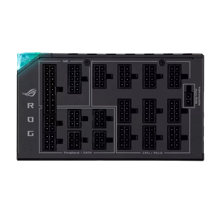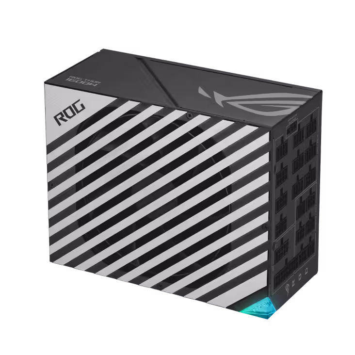 Dispone de certificados 80 PLUS Titanium y Lambda A++. La fuente incluye cables que aportan una conexión ATX de 24 pines, dos EPS de 4+4 pines, nueve mólex, diez PCIe de 6+2 pines, doce SATA, así como un PCIe 5 de dieciséis pines. La refrigeración está cubierta por unos buenos disipadores y un ventilador de 135 mm silencioso que no supera los 20 dBA a carga completa según ASUS.
