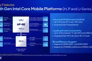 Como es habitual, salvo en la serie HX, en el resto de series el chipset va integrado en el encapsulado de los chips. Proporciona Wi-Fi 6E, conexiones SATA adicionales frente a lo aportado por el procesador, diez USB 2.0, cuatro USB 3.0. Los procesadores aportan cuatro Thunderbolt 4, dos conexiones PCIe 4.0 ×4 para SSD, una PCIe 5.0 ×8 para tarjeta gráfica, una HDMI 2.0b y una DP 1.4. Son compatibles con memoria DDR5-5200 y LPPDR5X a 6400 MHz, o DDR4-3200 y LPDDR4X-4267.