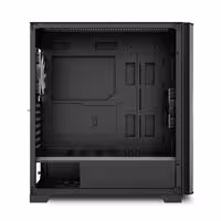 Se pueden instalar placas base E-ATX, ATX, micro-ATX y mini-ITX, así como tarjetas gráficas de hasta 380 mm de longitud, disipadores de CPU de hasta 172 mm de altura, y fuentes de alimentación de hasta 220 mm. En el compartimento de la fuente también hay dos bandejas para unidades de 3.5 pulgadas, y hay cuatro posiciones más para unidades de 2.5 pulgadas en el resto de la caja.