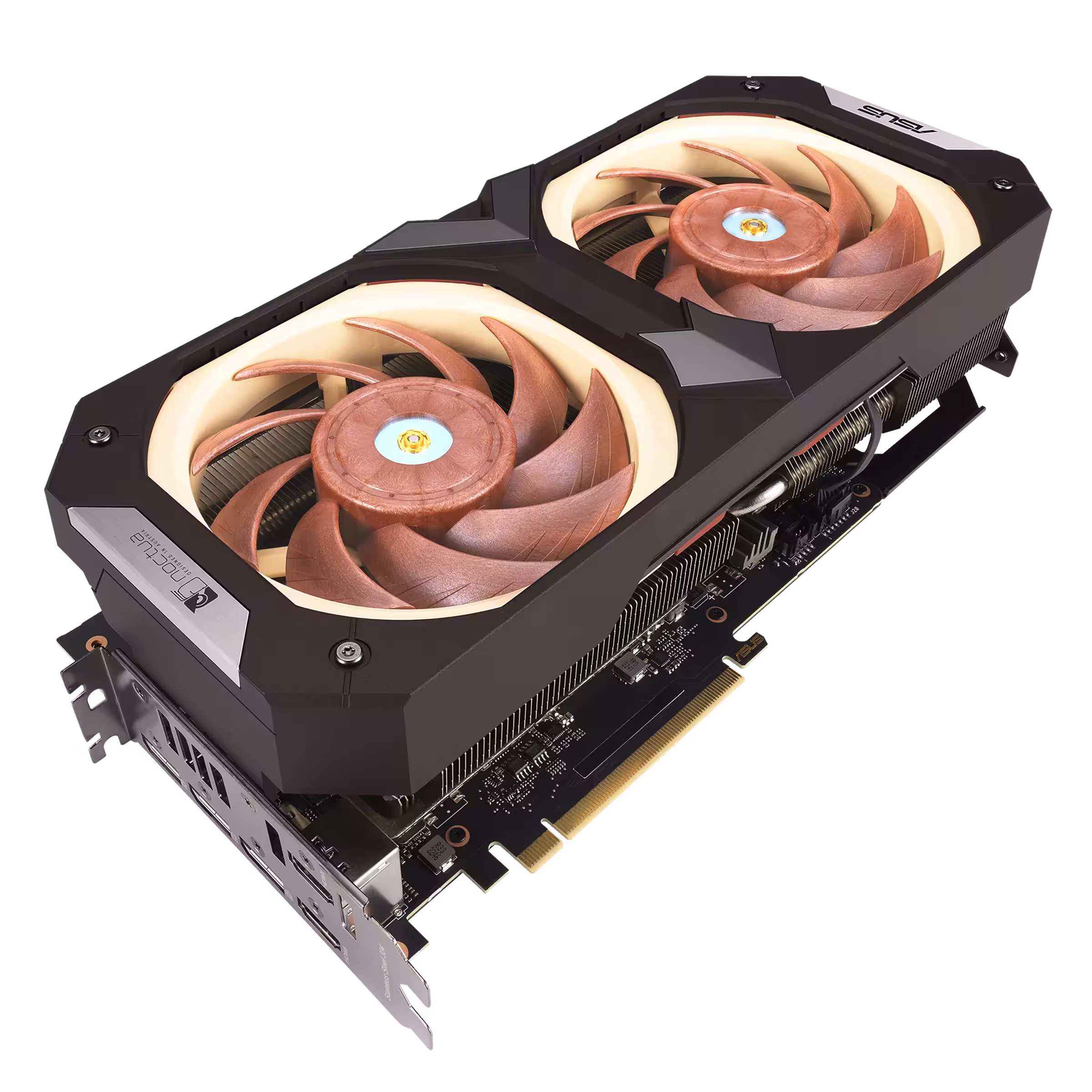 ASUS ya trabajó con Noctua en las RTX 30 para ofrecer un par de modelos muy silenciosos y de perfecta manufactura. Ahora vuelve a colaborar en la GeForce RTX 4080 Noctua Edition, un modelo en el que Noctua pone los ventiladores y ha ayudado en el diseño del disipador añadiendo una cámara de vapor, por lo que se espera un funcionamiento muy silencioso.