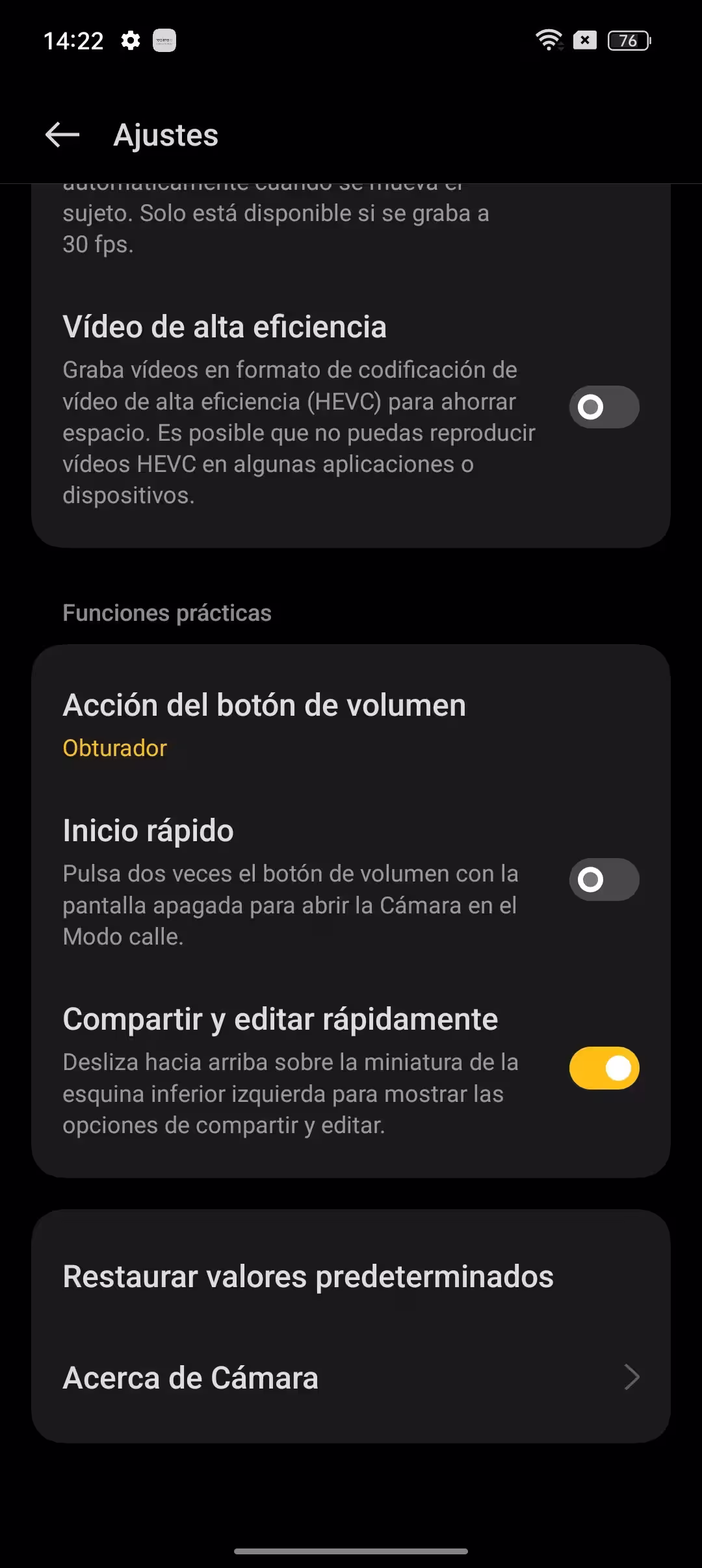 En cuanto al HDR, su utilidad depende de la escena. Dejarlo en automático no molesta, y cuando realmente se lo necesita, entra en efecto y hacer un buen trabajo a la hora de ampliar el rango dinámico de la foto, la diferencia de luminancia entre las zonas oscuras y claras. No he visto que perjudique la calidad de las fotos, pero sí que las puedes mejorar.