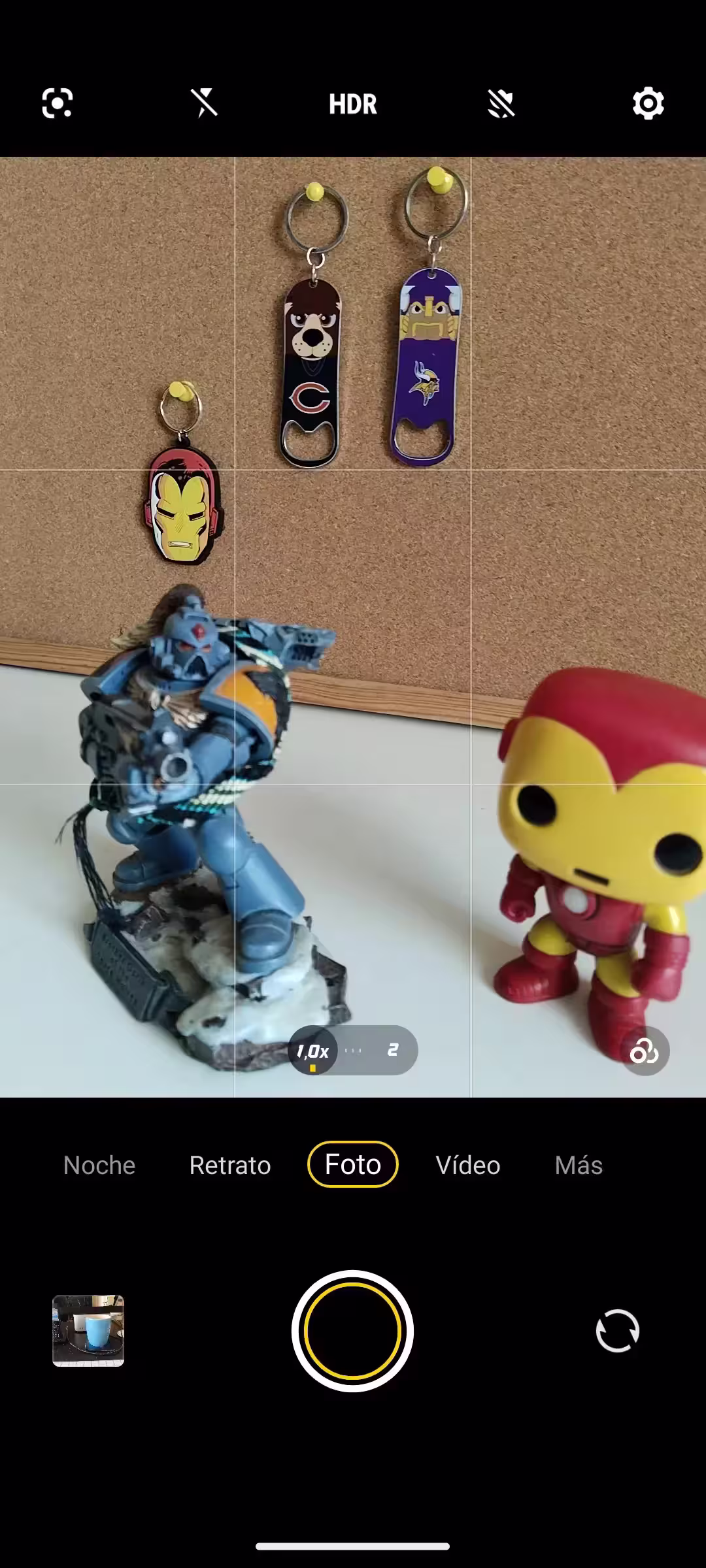 La aplicación de Cámara de Vivo no es muy distinta a la de otras compañías, aunque me gusta la organización de las opciones. Los modos normales son 'noche', 'retrato', 'foto' y 'vídeo', con más opciones como 'pro' o '64 Mpx'. Cada uno tiene sus propias opciones, con atajos en la barra superior y un desplegable para acceder a más. Puesto que la cámara principal tiene estabilizador óptico de imagen, se podrá activar y desactivar en ellas.
