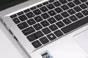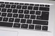 El teclado incluye los habituales interruptores de tijera, y dan en general bastante buena sensación de tecleo para lo que es este equipo y su tamaño. Entra justo el bloque principal de teclado, por lo que por su tamaño no se podía incluir el numérico, que a la postre tampoco es que sea de utilidad a los que no se dedican a hacer muchas cuentas y solo ocupa espacio. Está retroiluminado en color blanco. Aunque no alcanza un brillo muy alto, es más que suficiente cuando hay poca luz ambiental. El botón de arranque dobla función como lector de huellas dactilares, rápido y efectivo.