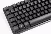 El teclado es de tipo compacto, con el bloque principal y el de los cursores. La hilera inferior de teclas especiales incluye teclas más alargadas de lo normal y con una cierta curvatura hacia abajo que al menos le da una estética distinta. Incluye tecla FN y otra para activar y desactivar la iluminación RGB configurable en cuatro zonas que incluye.
