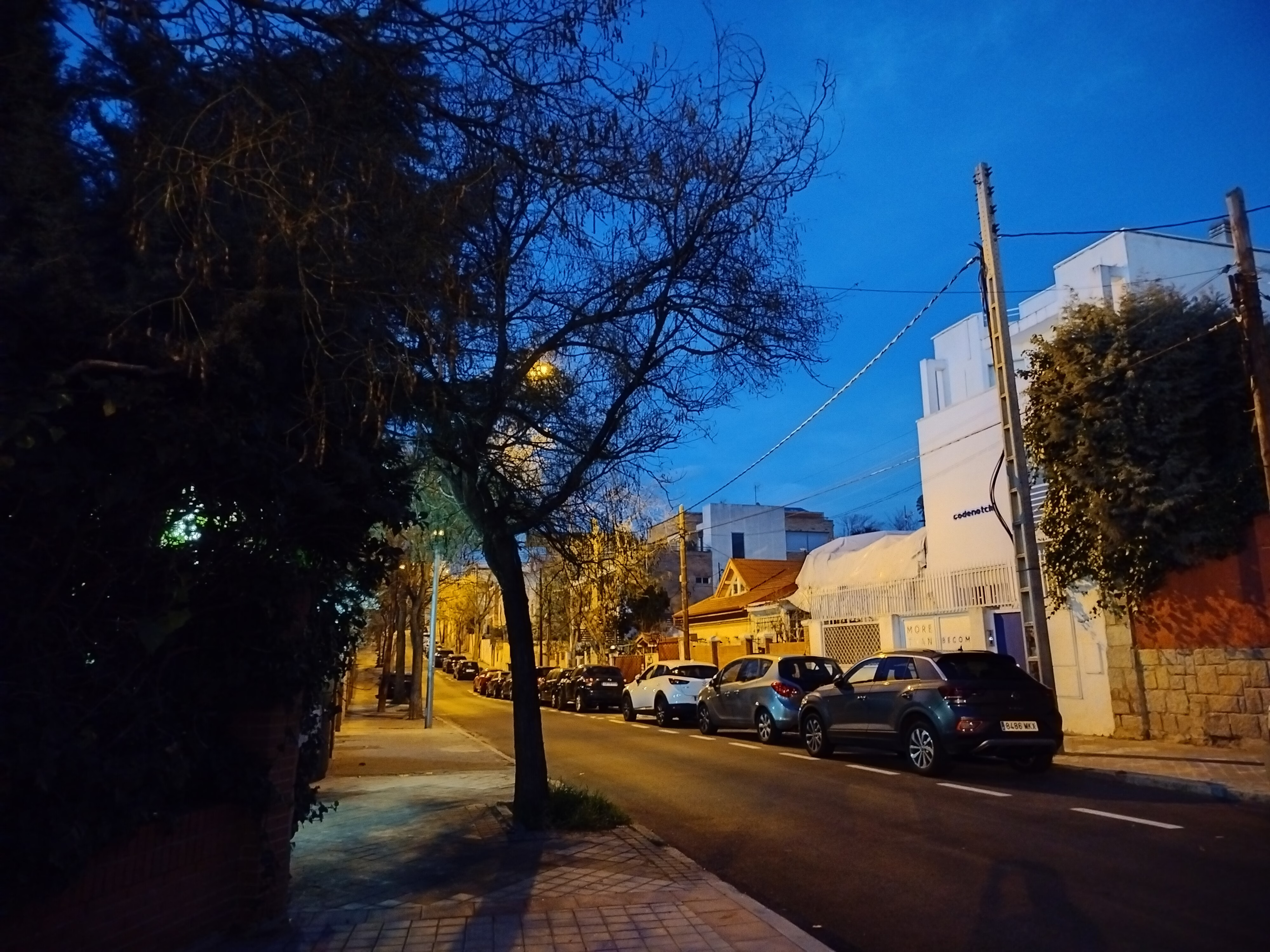 En cuanto a la fotografía nocturna, comparando el modo 'foto' con el modo 'noche', porque en el modo 'calle' las fotos salen igual que en el 'foto', las instantáneas salen algo más clareadas en el 'noche' además de con un ligero toque amarillo, más propio de la luz que hay en ese momento. Se nota que mejora el rango dinámico, por lo que el modo 'noche' sería el que habría que usar, sobre todo si hay focos de luz. Las fotos salen con mejor exposición.