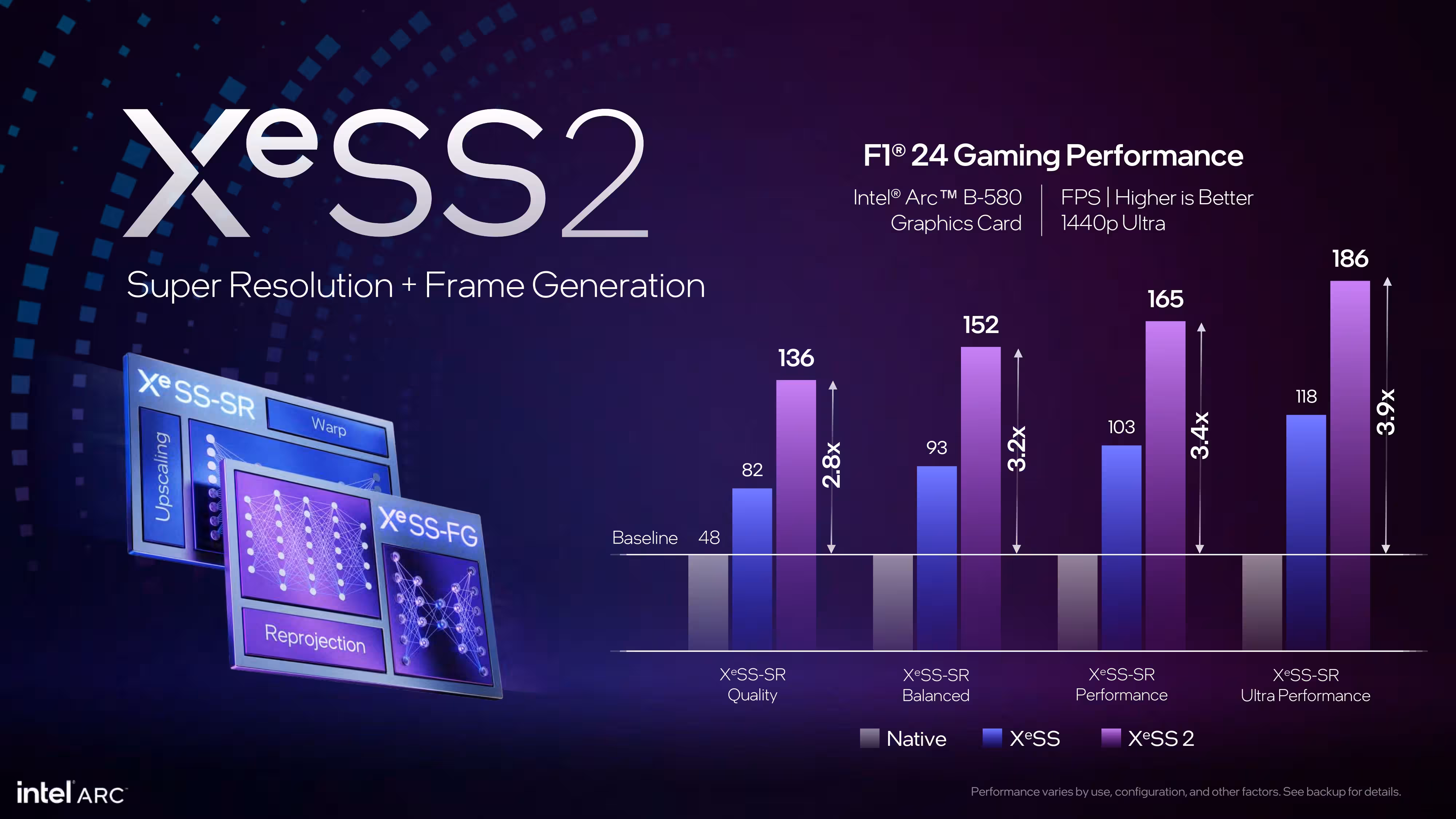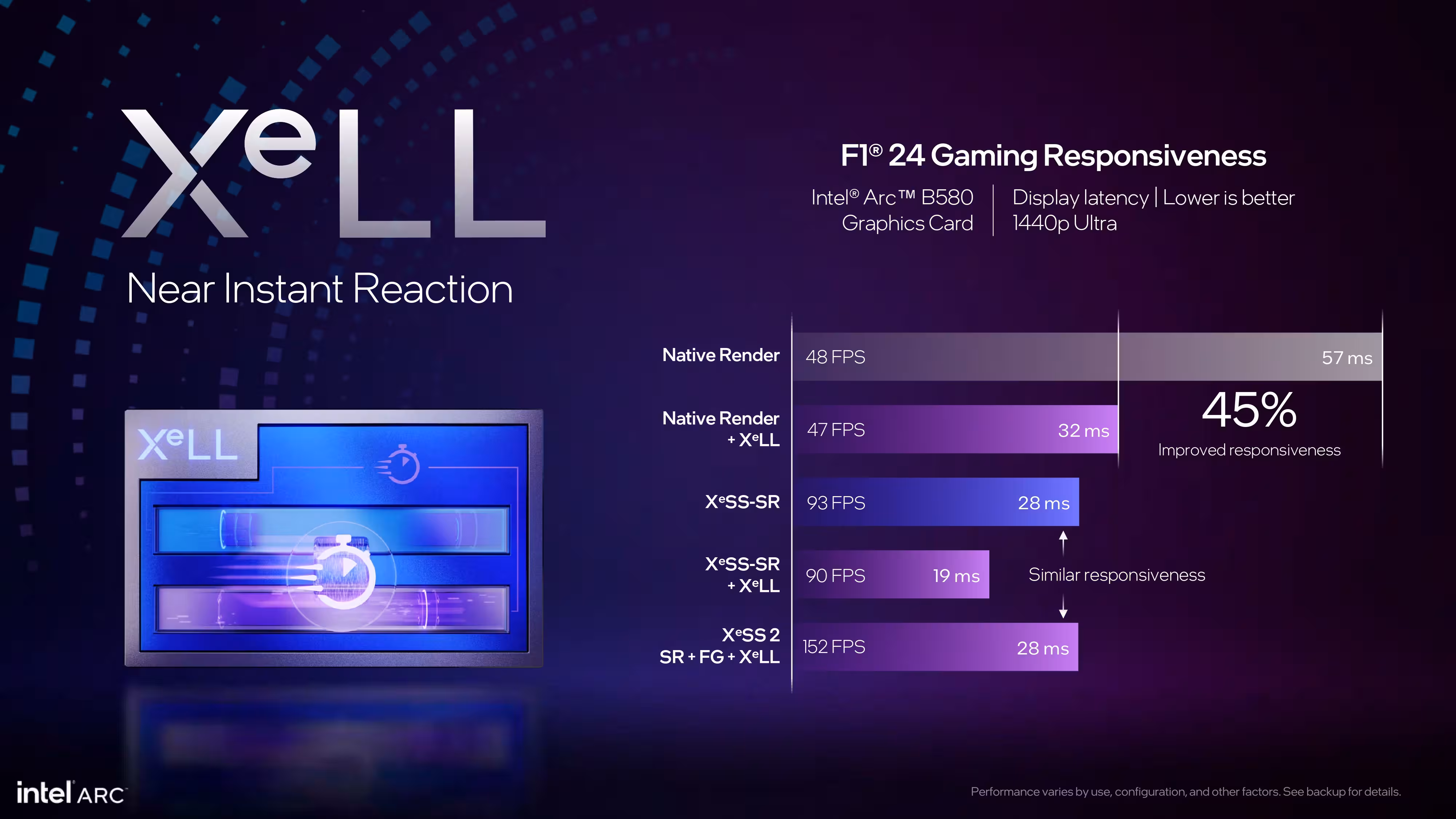 La arquitectura Battlemage ha llegado con nuevas tecnologías relacionadas de escalado y baja latencia, pero esto ya lo traté en otro artículo y tampoco quiero repetirme. La novedad principal es la inclusión de una interpolación de fotogramas (XeSS-FR) que llega acompañada del habitual sistema de reducción de latencia (Xe-LL) para ponerse a la altura de la oferta de NVIDIA y AMD en el terreno del escalado.