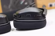 En la copa izquierda está el micrófono, abatible y flexible para ajustarlo mejor al portador, aunque no es retirable. Se apaga cuando se abate. También está el botón de encendido, un botón personalizable que por defecto rota entre preajustes de ecualización, una interruptor con clic para ajustar el volumen, y una toma USB-C para la recarga. Se pueden recargar mientras se usan.