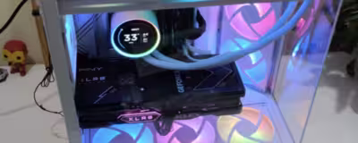 El montaje de esta caja realmente no tiene ninguna complicación porque es muy espaciosa para cualquier componente. El equipo que he montado en esta H9 Flow RGB+ 2025 incluye una placa base Z690-P de ASUS, 32 GB (dos de 16 GB) de DDR5-6400 CL 34 de Kingston, un Core i7-12700K, una fuente RM850x de Corsair, dos unidades M.2 2280 PCIe 3.0 y 4.0, y una refrigeración Kraken Elite 420 RGB de NZXT, junto con una RTX 4090 de PNY. En carga completa, con toda la iluminación ARGB que lleva más la pantalla de la RLI y otros, puede ponerse en 600 W jugando a ciertos títulos, que es suficiente para probar el flujo de aire de la caja.