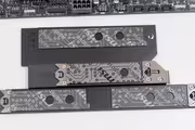 Las ranuras superior e inferior (M.2_1 y M.2_3/M.2_4) tienen disipadores de fácil quita y pon, con un resorte que las suelta, y al ponerlas hacen un clic y se quedan fijas. Es un sistema superpráctico. Además, todas cuentan con generosas almohadillas térmicas, de buena calidad, y la M.2_1 tiene además almohadilla térmica para la cara inferior de la SSD.