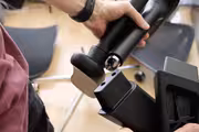 El siguiente paso es montar el mecanismo de elevación con cuatro tornillos y arandelas pequeñas, para luego conectar el bloque al respaldo con otros tres tornillos más arandelas grandes. Esta parte quedará montada al atornillar los reposabrazos con dos tornillos cada uno y arandelas grandes, y es lo más laborioso de toda la silla porque lleva un rato. Estos tornillos están en muy mala posición para atornillarlos rápido sin una herramienta más apropiada.