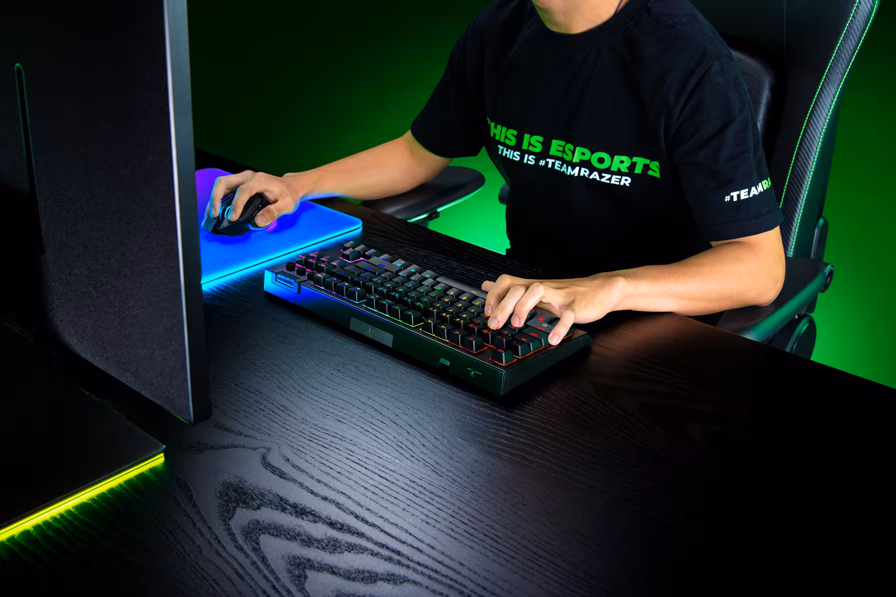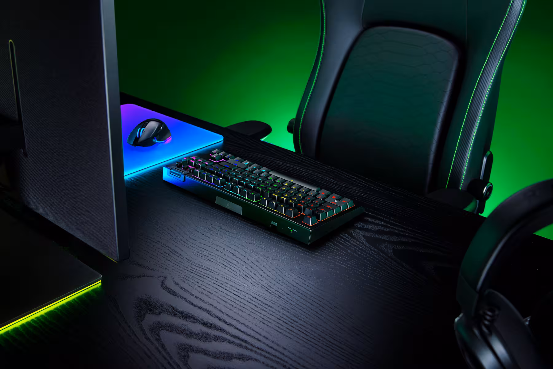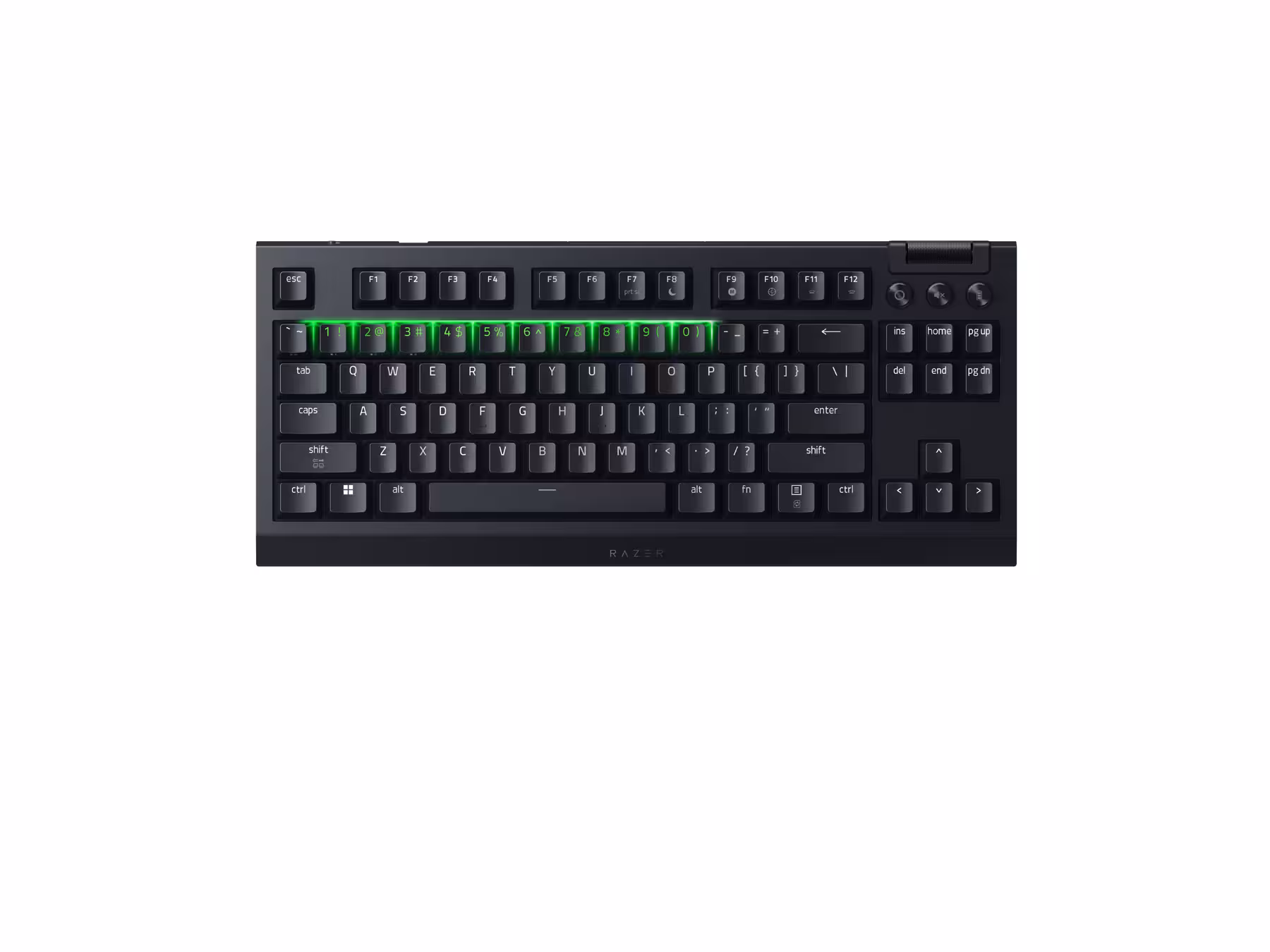 Razer ha presentado el teclado mecánico BlackWidow V4 Tenkeyless Hyperspeed, un modelo compacto inalámbrico que se puede conectar por Bluetooth con hasta tres dispositivos emparejados, receptor USB, o por cable. La batería puede durar hasta 980 h sin la iluminación RGB configurable por tecla que incluye.