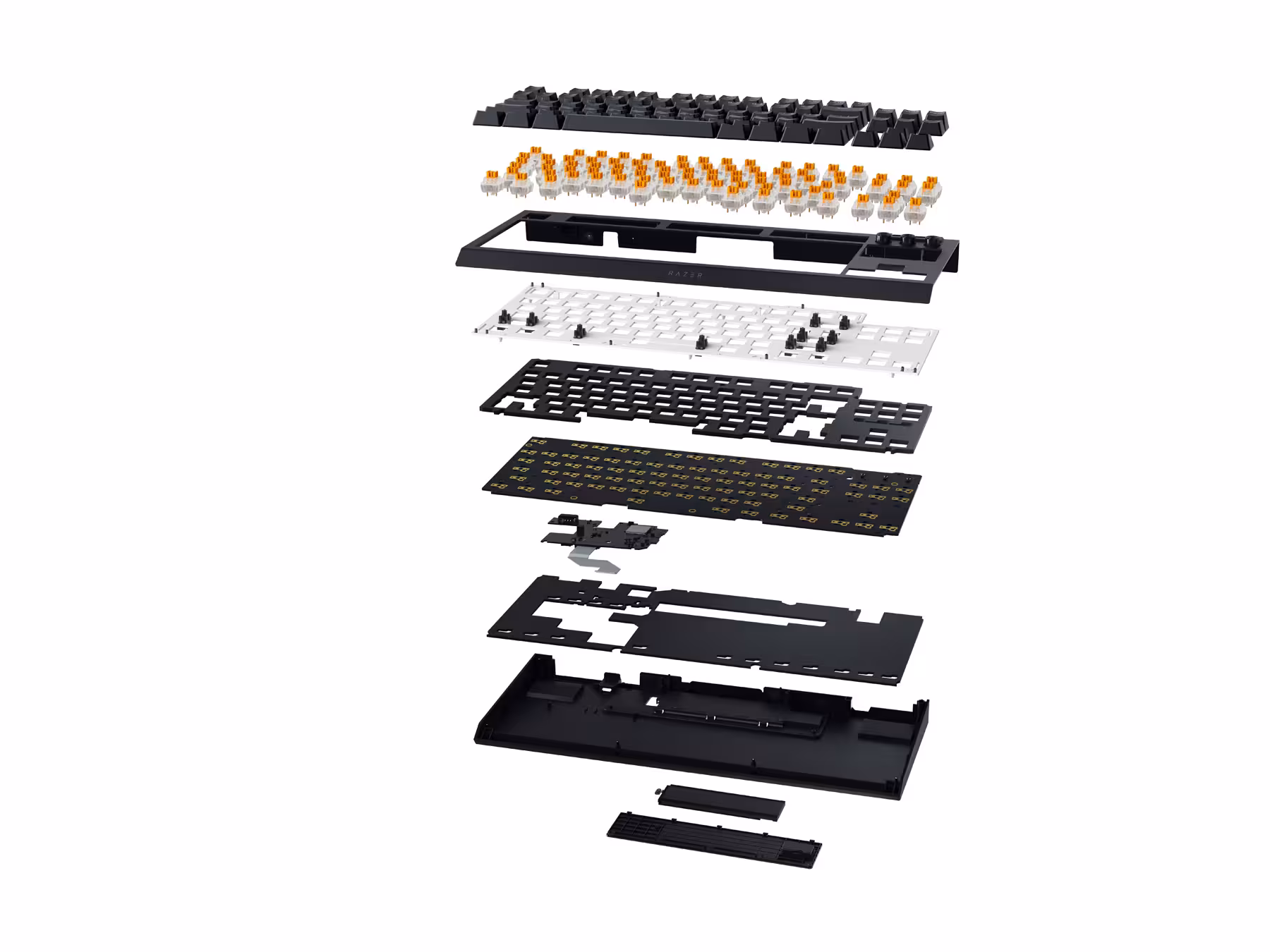 Se podrá comprar con los interruptores mecánicos de Razer de tercera generación en sus variantes verdes (sonoros), amarillos (lineales) y naranjas (táctiles). La parte superior es de aluminio, seguida por una plancha de acero con algunos estabilizadores que estarán prelubricados, y dos capas de espuma para eliminar ciertas componentes agudas durante el uso del teclado.