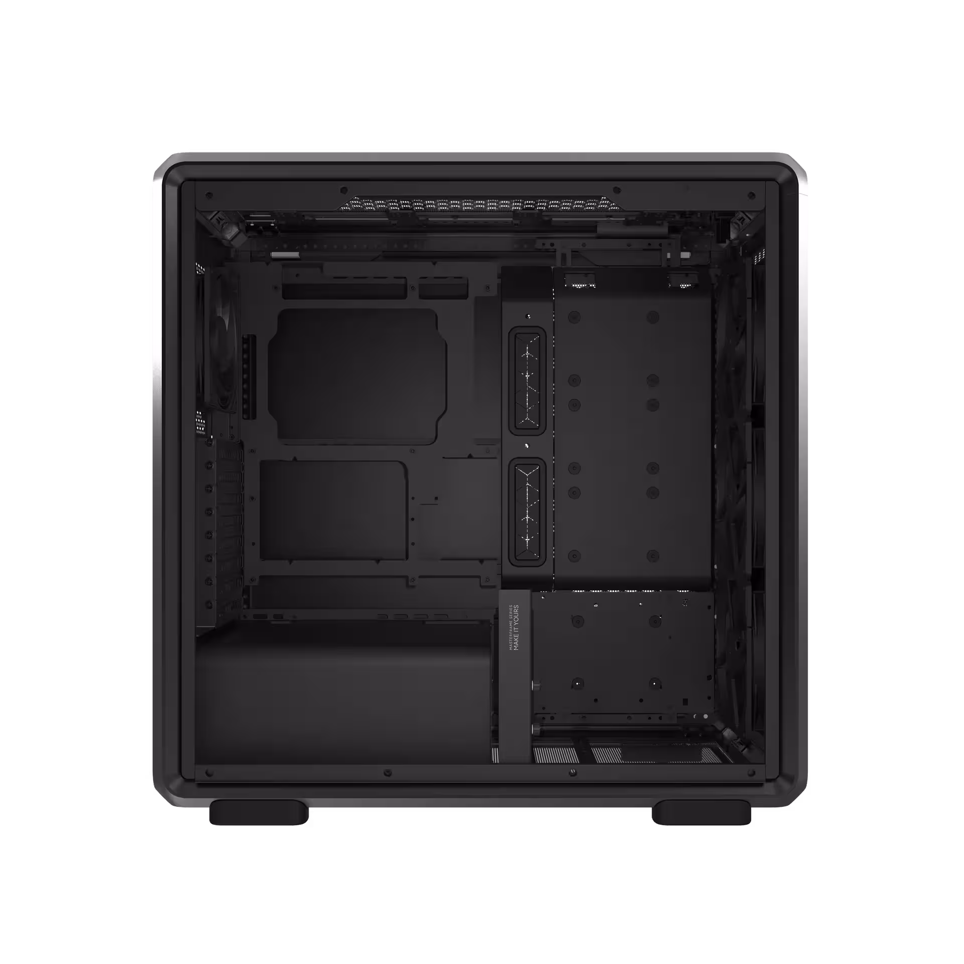 Se pueden instalar en el frontal hasta tres ventiladores de 120/140 mm o dos de 180/200 mm, en la parte superior hasta tres de 120 mm, dos de 140/180 mm o uno de 200 mm, uno de 120 mm en la trasera, y tres de 120/140 mm en el lateral derecho. Hay preinstalados un ventilador de 120 mm y tres de 140 mm.