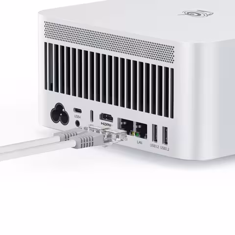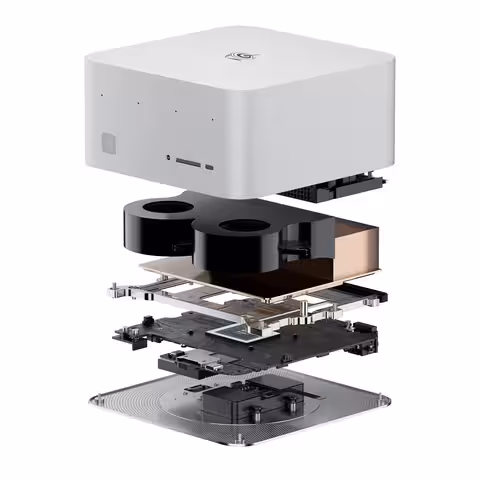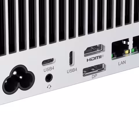 También incluye 128 GB de LPDDR5X-8000, con posibilidad de asignar 96 GB a la VRAM, para que se pueda usar en lo que se quiera, incluso entrenamiento de IA. Tiene preinstalada una SSD de 2 TB, y hay otra ranura M.2 2280 vacía. La fuente de 230 W además es interna, por lo que es un producto que se alinea más bien con el Mac Studio de Apple.