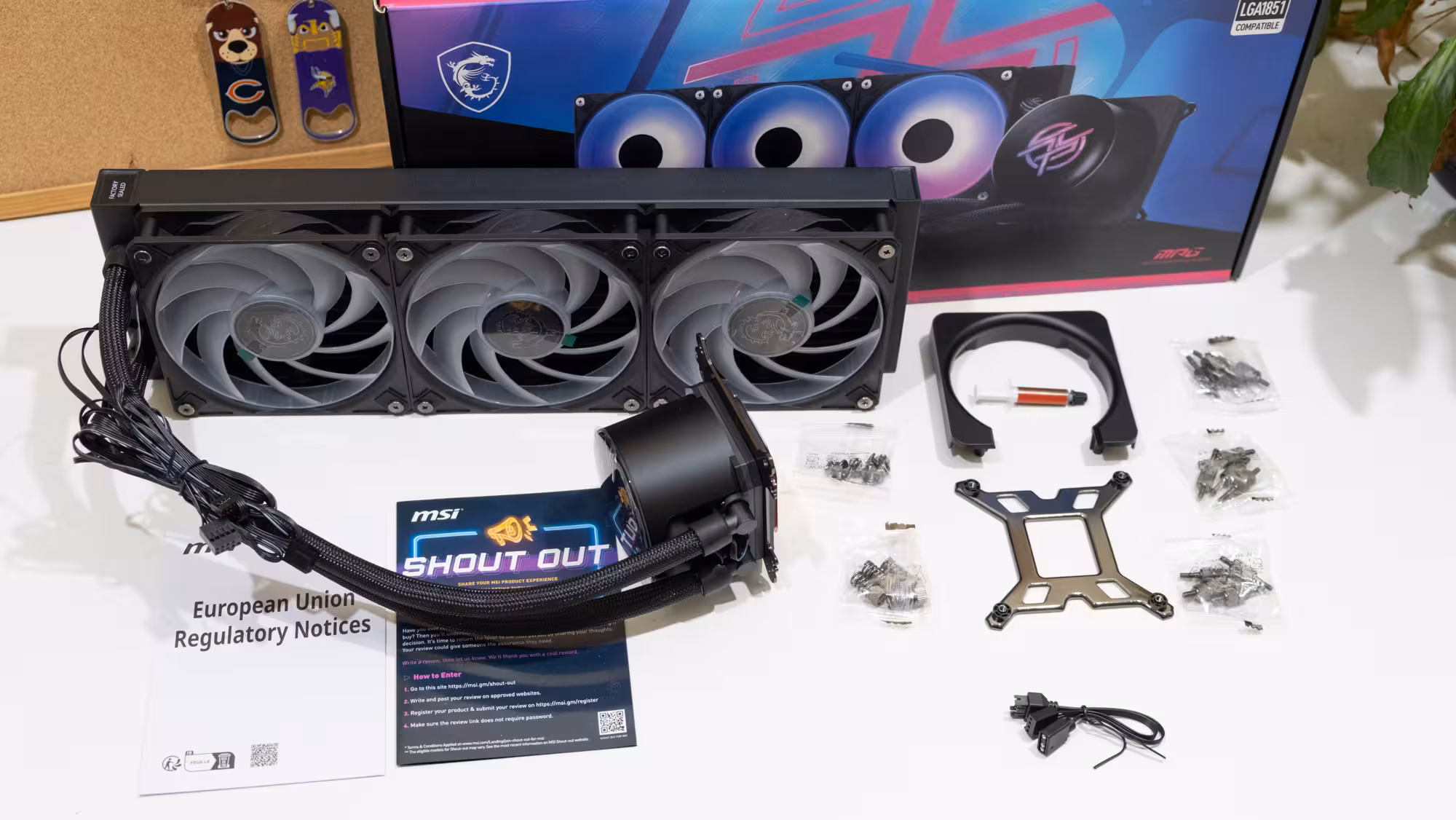 El manual de instalación está disponible en la web de MSI, pero es muy sencillo y está en la línea de como se está haciendo en los últimos años. He montado esta refrigeración en un zócalo LGA 1700 con un Core i7-12700K, y lo único que cambia en las AM4/AM5 son los tornillos de soporte que hay que enroscar en el retenedor preinstalado.