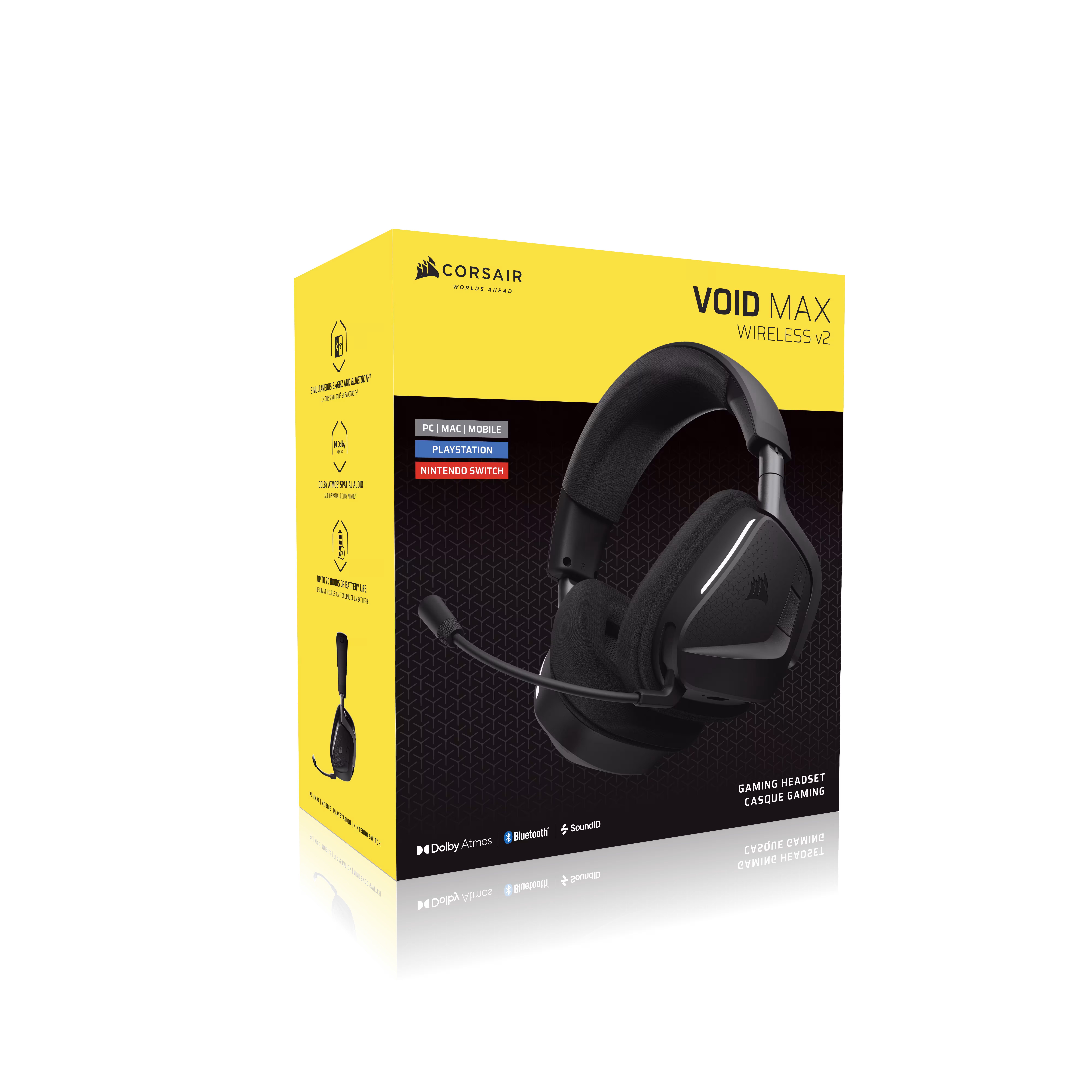 Corsair ha anunciado los auriculares Void v2 Max Wireless, que abundan en el diseño de la serie Void que es tan característico. Son circumaurales cerrados, con algo de iluminación ARGB en las copas las cuales se pueden extender, y son amplias porque en su interior llevan un transductor de 50 mm. Cuenta con respuesta en frecuencia entre los 20 Hz y 20 000 Hz, tiene una impedancia de 32 Ω y una sensibilidad de 116 dB.