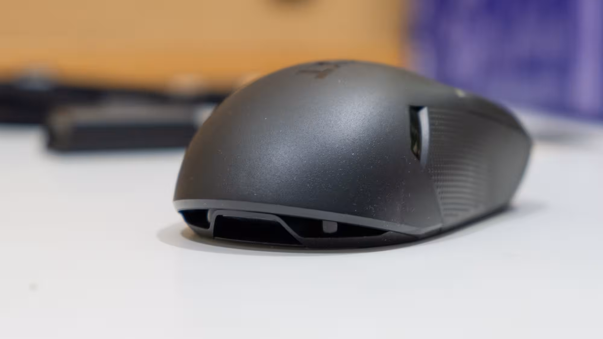 El diseño usado para hacerlo ligero hace que tenga solo un par de almohadillas de teflón de tamaño comedido y una pequeña en torno al sensor. Desliza bien por su bajo peso, pero no es el mejor ratón que he probado en los últimos tiempos en este apartado. También hay un botón que por defecto sirve para cambiar la sensibilidad del ratón. No es la mejor posición para hacerlo rápidamente, pero no molesta su inclusión.