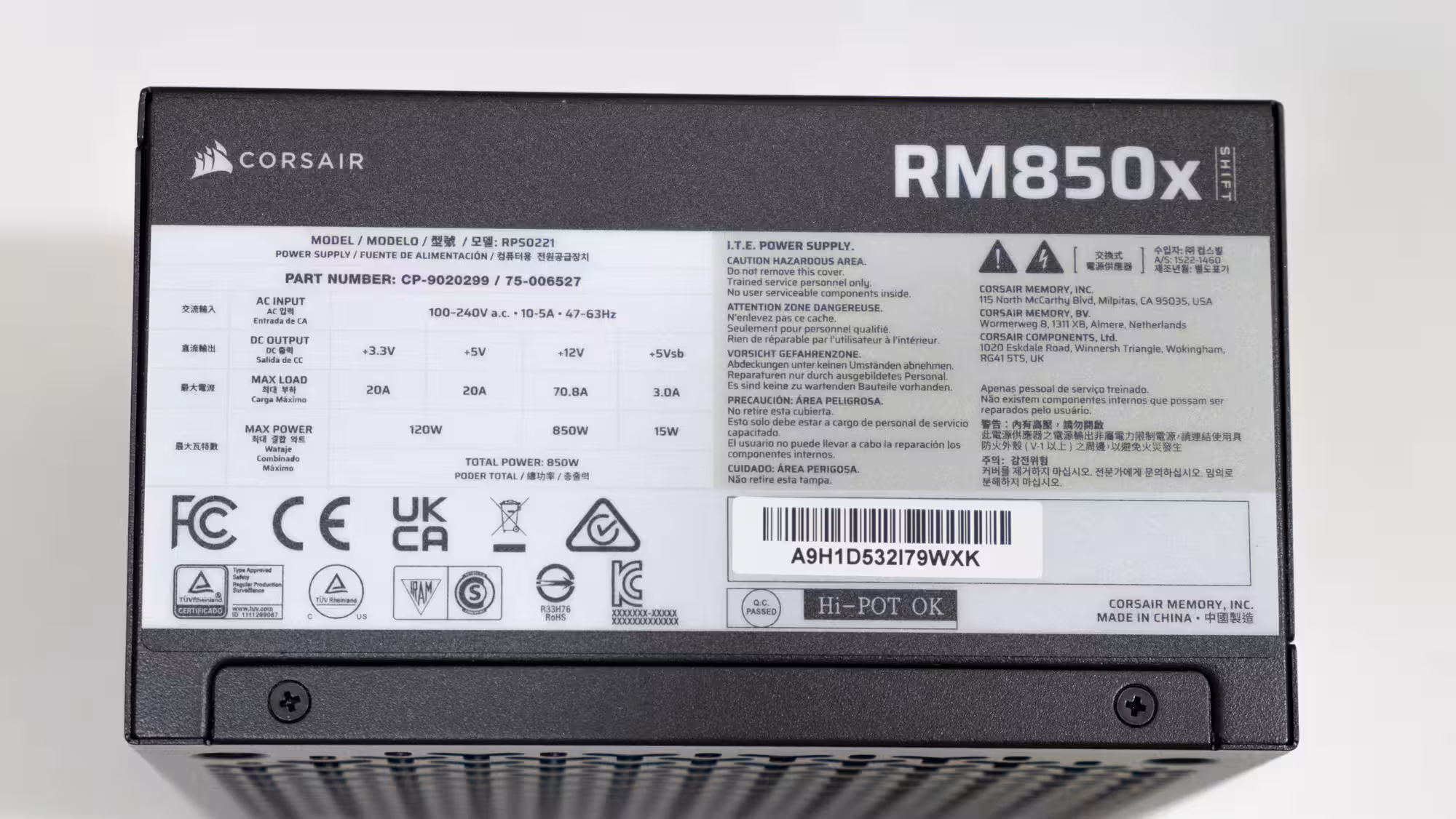 La RM850x Shift 2025 es un modelo con un tamaño de 86 mm × 150 mm × 160 mm y tiene un peso de en torno a 2 kg, por lo que es similar al modelo RM850x Shift original. La estructura interna de esta fuente es igual al de la RM1000x Shift 2025, y la RM750x Shift 2025 es ligeramente distinto. La fuente cuenta con la variedad habitual de protecciones: sobrecorriente (OCP), sobrecargas (OPP), sobretemperatura (OTP), sobretensión (OVP) y cortocircuitos (SCP).
